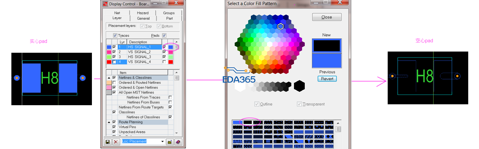 EE 7. 9.4 中如何使焊盘空心显示?