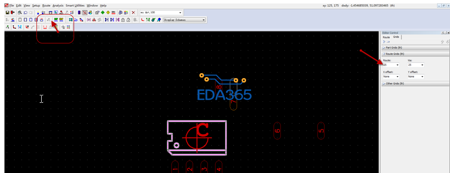 在Cell editor可以通过在布线模式下,设置不同的布线格点,