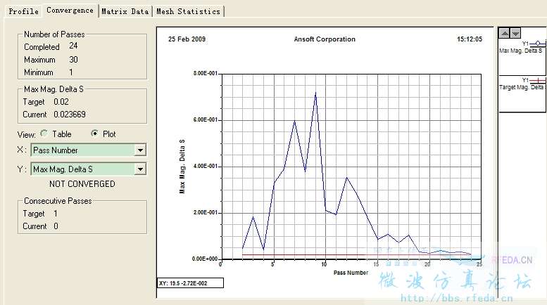 [attachment=15845][attachment=15844]用本征模算很快就算出,然后同样几何模型在DrivenModal下就算不出,Mesh数量的确很大,而且Delta S的曲线很有意思,刚开始几步都快收敛了,结果后面几步越差越远,导致mesh超过,内存不够用,为什么会出现这样的情况呢?