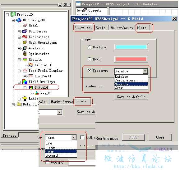 如题,请问用HFSS如何观看模型的电场等值线?比如说一个波导中电场等值线?我看那些场值什么的都花花绿绿的,看不懂是什么意思,只能看明白哪电场强哪电场弱....谢谢