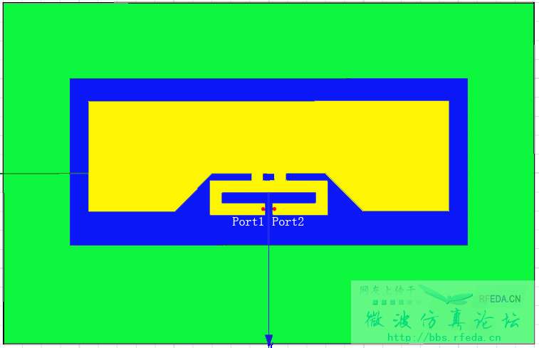 由于UHF频段RFID芯片为复阻抗,因此选用Lumped Port,芯片的两个引脚分别接Port1和Port2两个接入点,假设定义Port1为信号发射、接收端口,因此芯片的另外一个引脚需要接到Port2上,那么如此两个端口怎么定义呢?