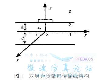 如图所示是一个双层介质的传输线结构,微带下面的2区介质高度为h,介电常数为ER1, 1区介质高度为d,介电常数为ER2。