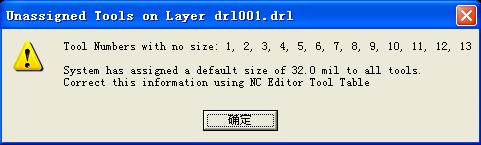 此窗口提示正常,不会出错。意思是:导入孔径时不是实际的大小,都是36mil大。具体大小再在cam350里去改