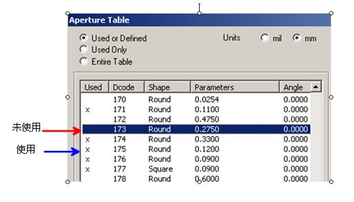好的,结合“只清除没有用到的D码的而不重新排列”的条件要求,我写出以下外挂作为试用,权当抛砖引玉(注:以下外挂在CAM350 V 7.6 通过),顺便说明一下,这个外挂出结果有点慢,我会尽量再找出更快一点的方法来优化之,但愿能找到: