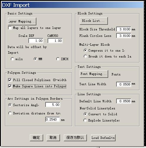 使用CAM350 V9.5.1导入DXF文件后,在弹出的对话框里如图设置
