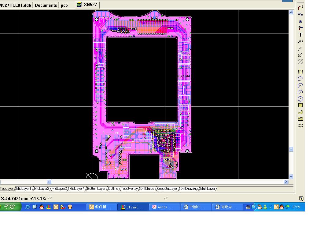 此板子为6层板,我打的是0.4mm/0.2mm的过孔!