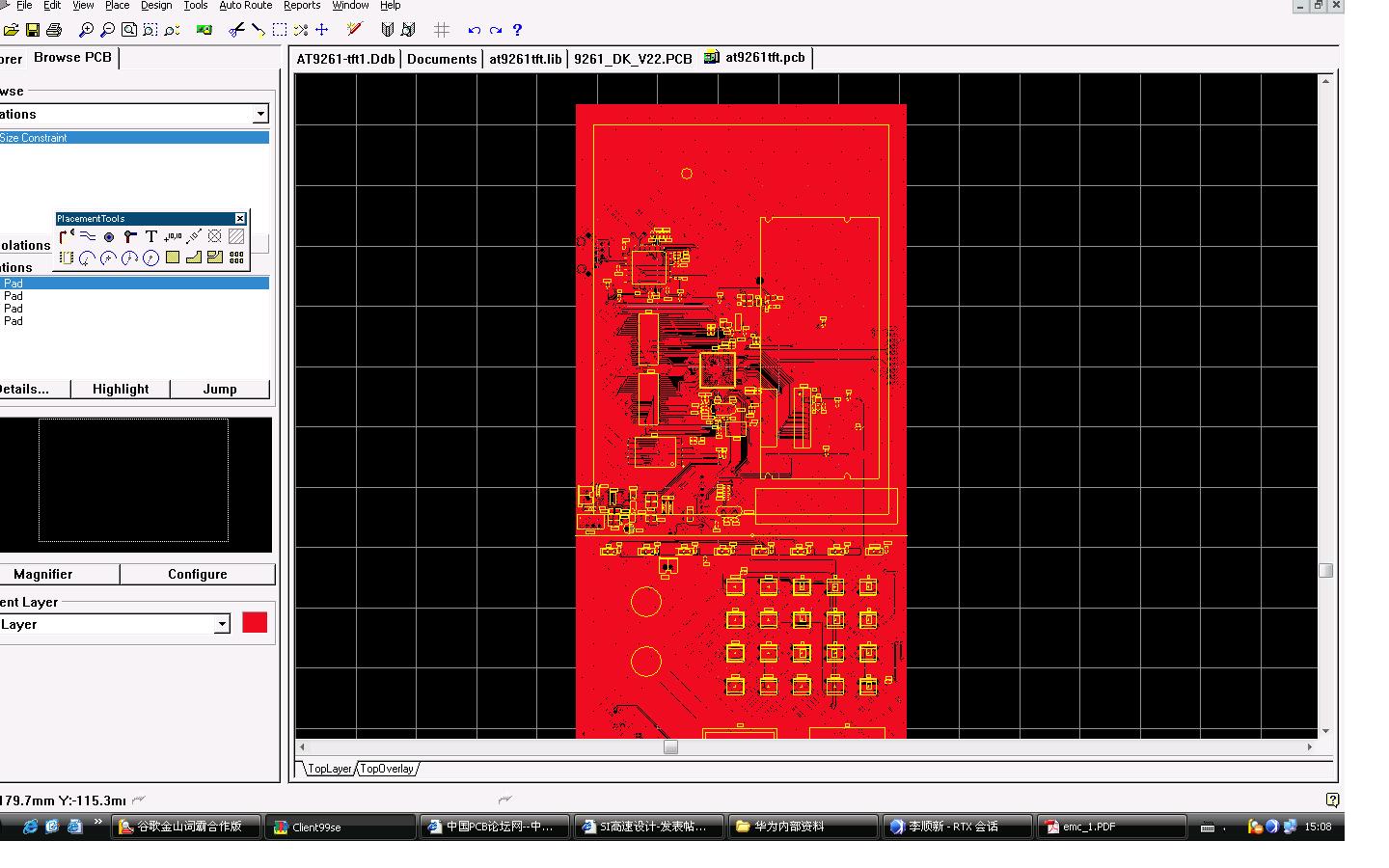 各位XDJM,画的是个AT9261控制的触摸屏的控制板图,由于是第一次画BGA封装的PCB,不足的太多,还请多多批评,我也好知道不足的地方,