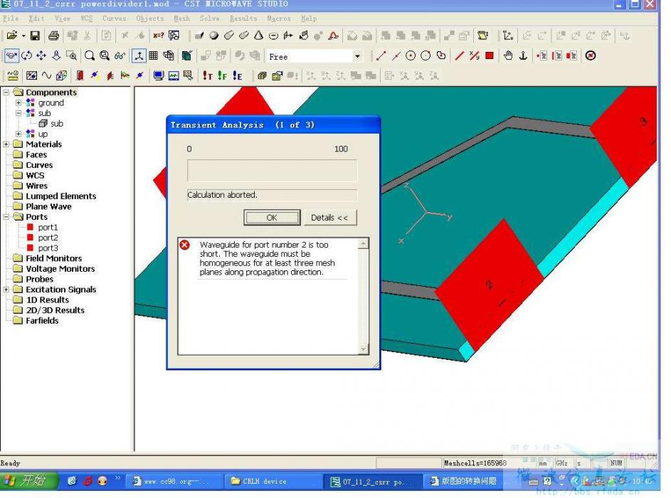 模拟一个功分器,结果端口老设不对,不知道是甚么问题,高手帮忙看看吧,谢谢啊!