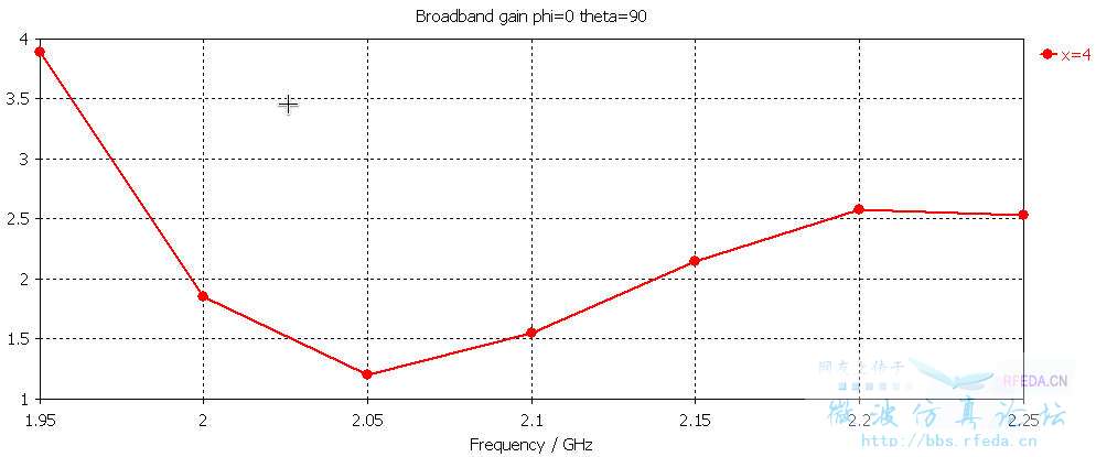 一般情况下,轴比在0°是最小的,所以我想看的曲线是0°的轴比对频率的曲线,但是仿真计算出来的轴比对频率曲线不是很符合各频点监视器的结果。