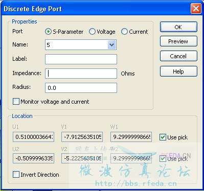 离散端口处多出来的半径设置,是因为集成了TLM求解器。在用TLM求解器时,该离散端口就变成了以前MS工作室中的“Wire”。