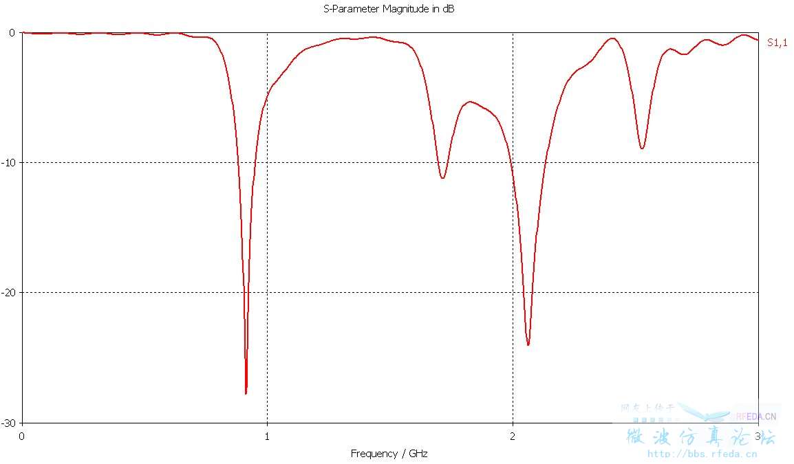 你需要知道,在工程上,回波损耗和S11是两个完全不同的定义。因此,如果要问Return Loss,你需要画出RL的图形,而不是指着S11图说RL。这两者有数值上的联系但不要混淆乱用。[1]