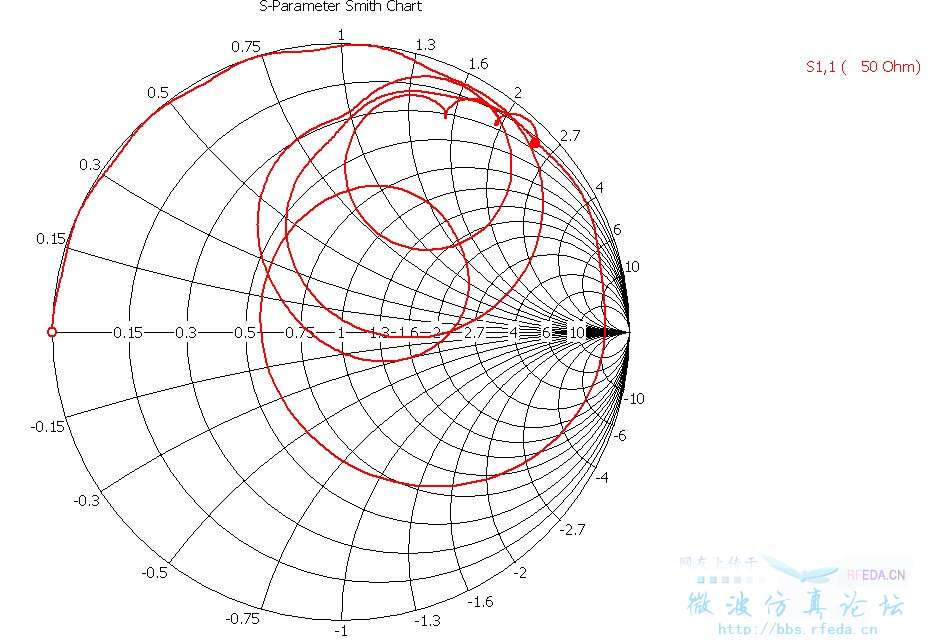 E. 你的图里每次曲线接近圆心的频率点都是多少,对应在S11曲线有什么规律?