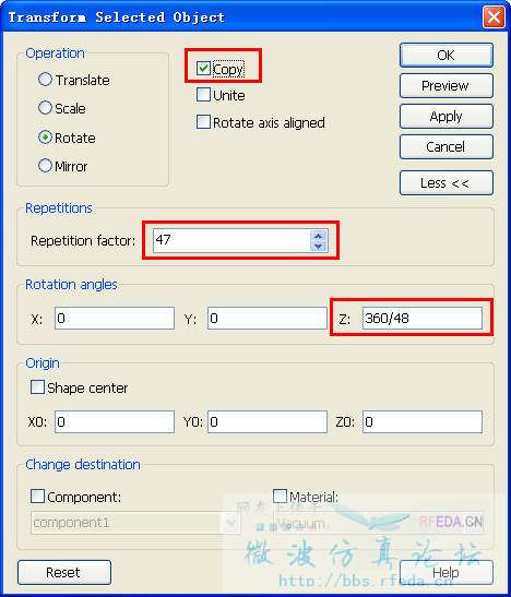 画一个圆环,把它均匀地分成48份,在每一小份里面画一个面积很小的长方形,我想画出一个,剩下的复制粘贴,CST如何做到?