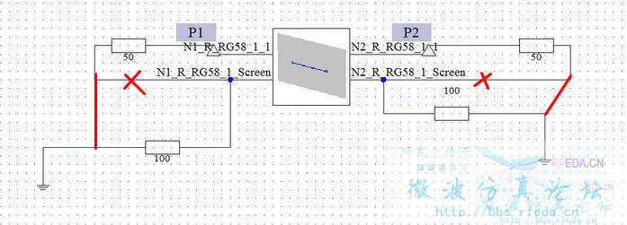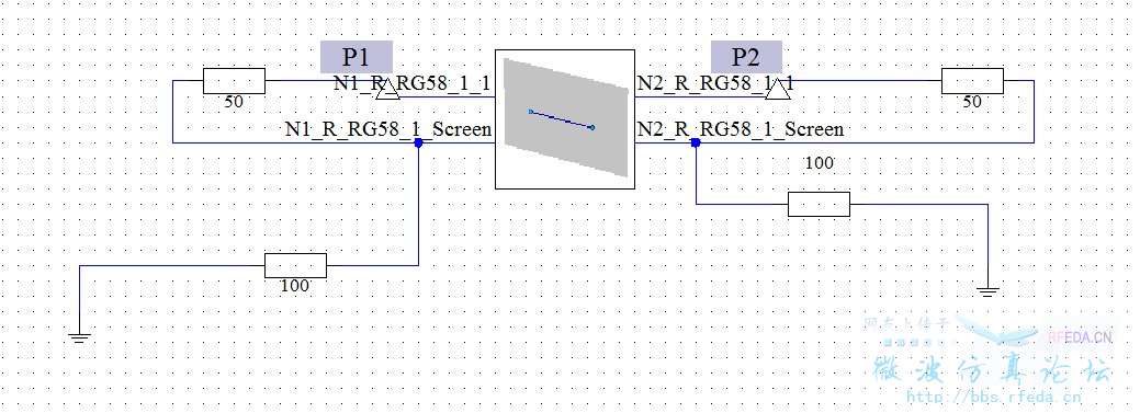 要做一个同轴电缆EMC问题。模型中同轴电缆屏蔽层接100欧姆电阻,内导体接50欧姆电阻。请问在DS中应该如何建立电路模型,我的模型如图所示,但是结果不对。 另外想问问在MWS中可以添加同轴电缆的内外导体电阻吗,如何添加?