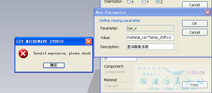 cst高手们,我刚学用cst仿单腔频率,这个没什么问题,当设置一些材料膨胀系数等变量却老是出错,如图,求高手指教,江湖救急