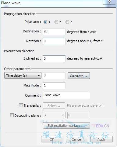 微波工作室中,平面波的波形就是激励Exitation里,默认。