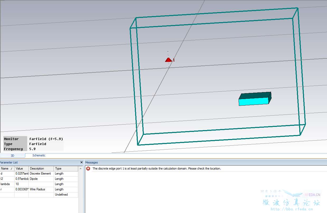 仿真错误: discrete edge port 1 is at least partially outside the calculation domain