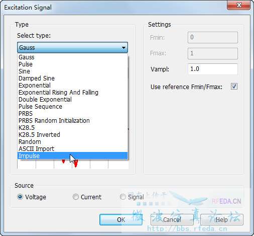 在Signal中有很多现成的信号供选择,你也可以导入自定义的激励信号