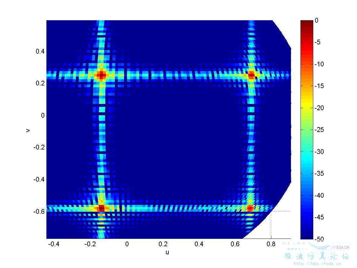 然后左右,上下相连的grating lobes 那个脊,值都比较高,远看,就是个大网格子,