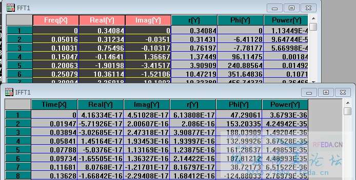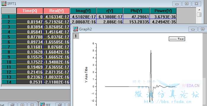 然后我对傅立叶逆变换后的时域表格进行了选择(如图五),这样以来就和原来的信号图一样了。