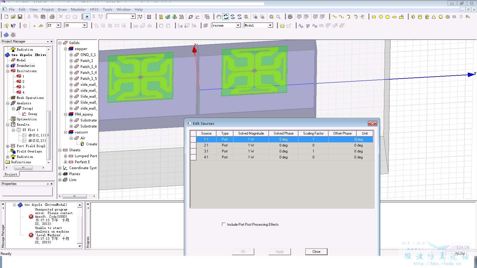 但是单个阵子 一样设计方式,之前是可以仿真的,现在只不过同样办法,设置了两对端口