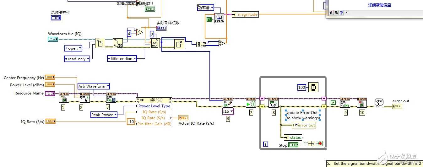 采用 IQ array方式将IQ数据写入(I,Q的值写入信号源PXIe-5673的任意波形发生模块5450(5450是一个16位的DAC,板载内存为512M)上),或者将I和Q的每一个值扩大一个倍数,频谱显示没有区别。