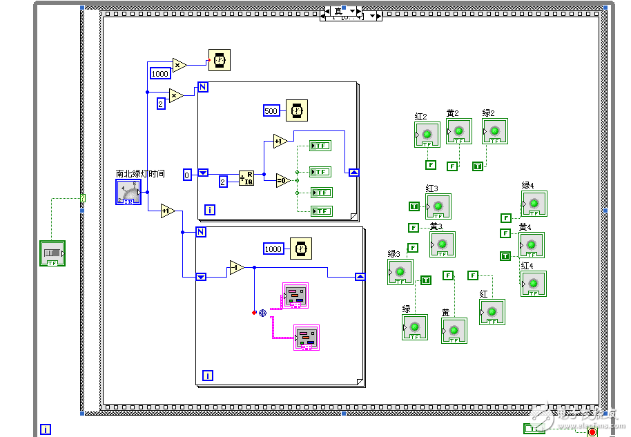 用labview设计交通灯,在仿真完后怎样把程序和NI ELVIS那个面包板连接。怎样在程序中加DAQ。使交通灯程序运行时,那面包板上的红绿灯也跟着亮。求高手指点。谢谢