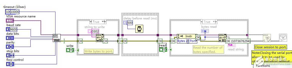 我用的是labview2011 64位自带的串口读写程序,为什么写入0302后读不到数据呢?谢谢了