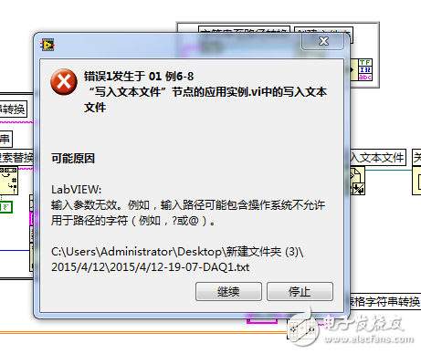 你的VI创建的TXT文件名不对,不符合文件名规则. / . @等特殊字符不可用于文件名