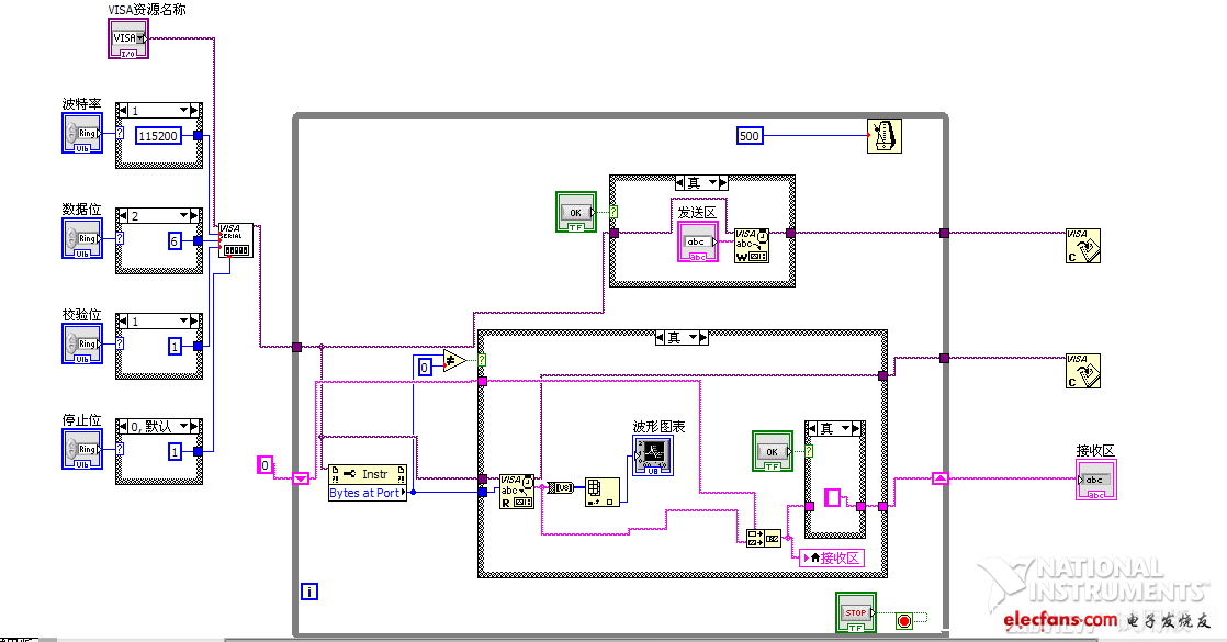 波特率,停止位,奇偶检验,字节配置的数据类型不对。连线的时候,在接头处右击,创建,常量,改过来就好了