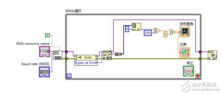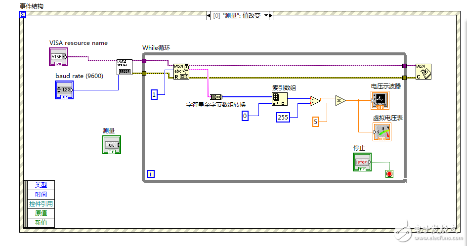 我先把事件结构去掉,执行剩下的.不管怎么调节单片机经过串口传送的数值,波形就是一条直线,一直不变是怎么回事啊?