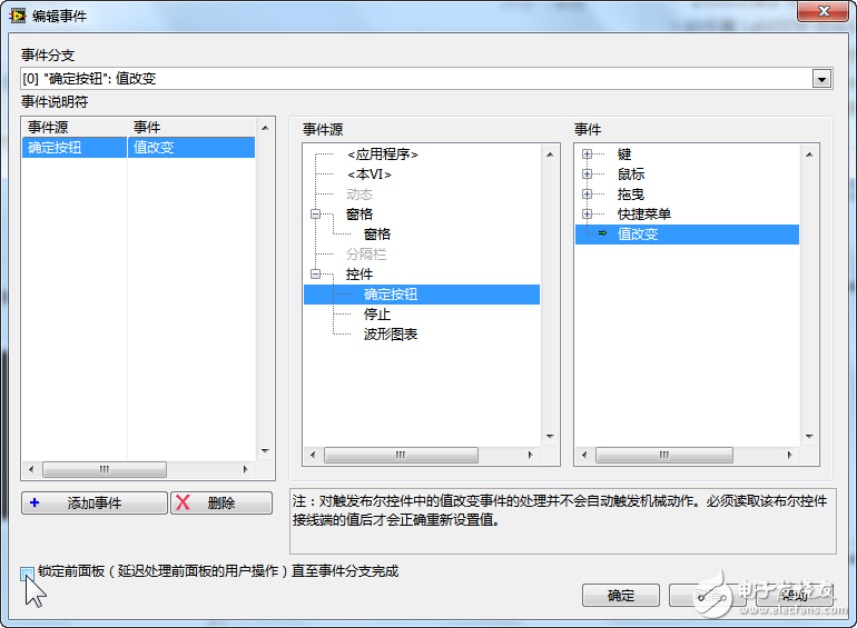 这是因为你按下【确定按钮】后,就触发了【确定按钮:值改变】这一事件,事件里面是一个循环,而循环没有结束条件。(此事件没有结束,界面无法响应)