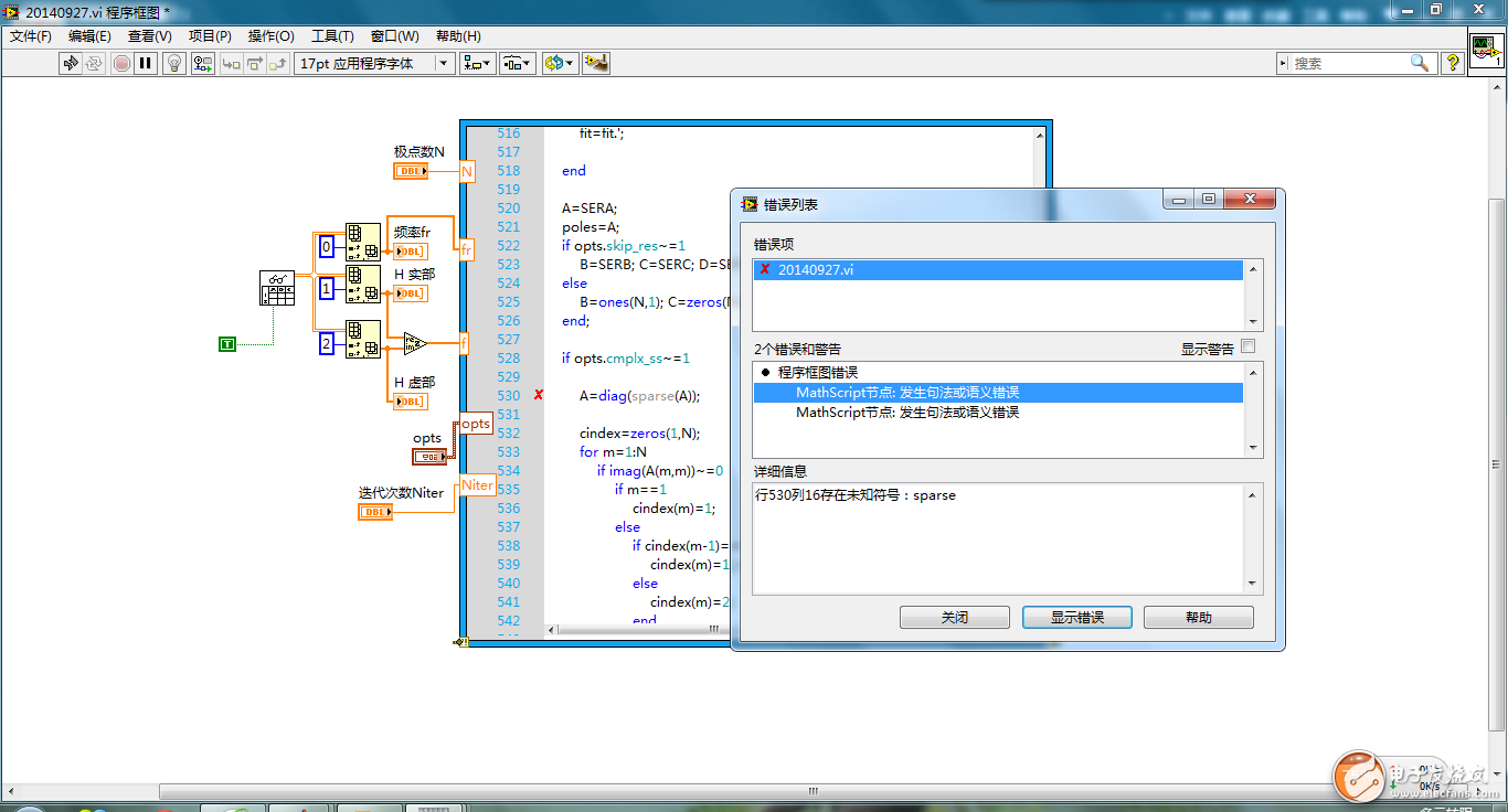 labview中mathscript节点的sparse函数问题