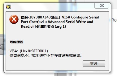 运行labview自带的visa范例时出错。。求大大们解答。。。。。