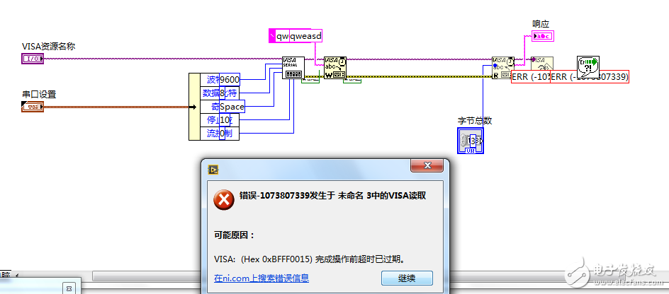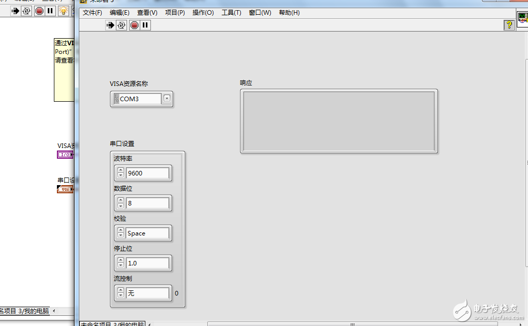 问题一:我写的程序如第一幅图所示,运行并没有问题,但是就是前面板的响应输出界面并不显示读出来的数据“qweasd”。