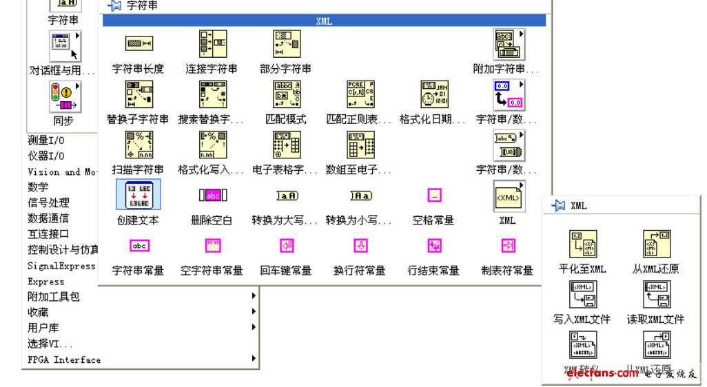 看到有些人的labview关于xml的函数很多,而且是在文件I/O面板下,怎么我的xml函数在字符串面板下,并且只有6个函数?
