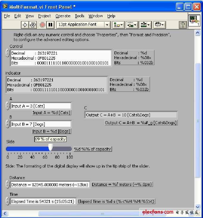 如你所看到的,数值控件的值可以被重新设定显示的方式。当然,一些描述性的文本可以