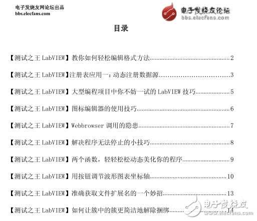 LabVIEW开发者必备技巧宝典由电子发烧友网论坛出品,集结众多大牛、工程师的经验之作。为广大LabVIEW开发工程师提供开发、调试技巧,助力LabVIEW工程师。更多精彩内容:http://www.elecfans.com/soft/73/ ... 010.html?1416554023