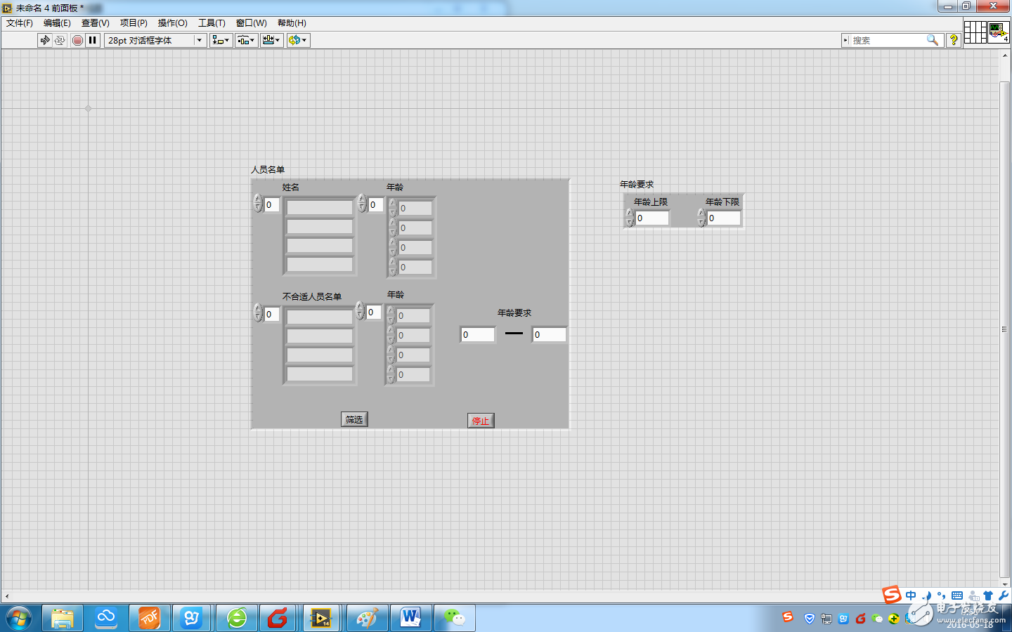 如下图,有两个簇结构,一个包含人员姓名和年龄,和不符合要求姓名和年龄,要求通过输入年龄要求簇里面的上下规格,可以把人员名单簇里面的年龄不适合的人员在“不适合人员名单”里面显示出来,同时,年龄控制要求也要在“人员名单”簇中体现出来,不会编这个程式呢。