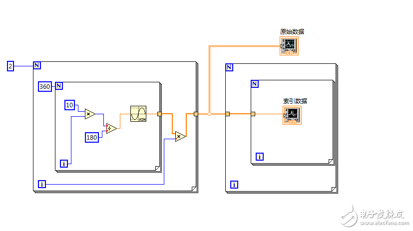 书上要求不仅能显示原始数据的波形图,还要显示索引数据的波形图?可是怎么么也连不上啊,找了老半天也不知道在那里转换,提示说是输入端为双精度类型,接收端为1D数组类型,即使知道这些,可我依然也不知道该怎么改呀?