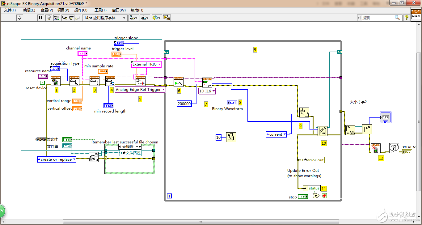自己在NI的例子上修改,是外部触发来控制采集。但采集的波形数目不对。比如一次发送10个正弦波,
