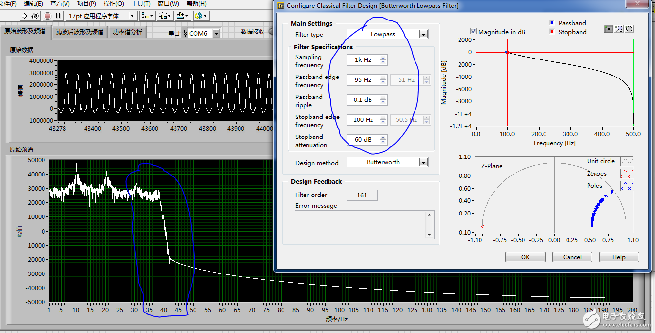 如下图,本人利用labview的数字信号处理工具包设计了一个butterworth低通滤波器,理论过渡带频率为95-100Hz,实际结果却在40Hz左右,多次修改参数发现实际结果都是设计参数的2/5倍,求各位大神指点一二,谢谢!