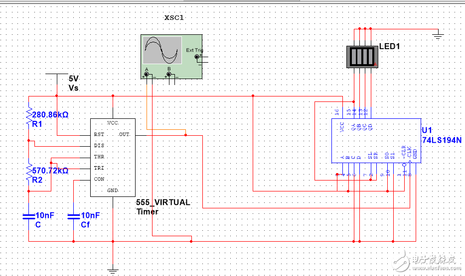 > MULTISIM里用74LS194制作流水灯,灯不亮(有图),求大神解答。