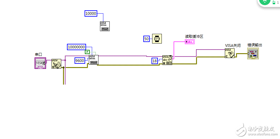 发送写入串口命令后最好延时50ms再使用读取串口字节数,当字节数等于18才读取visa所有的错误簇必须连这个框图的数据走向谁看的清