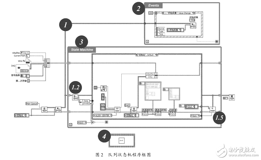 如图中状态机,本人想借鉴该程序框图做个采集程序,但是在对第二个图中的队列做引用时不知道该怎么建立引用,希望有人能告知,非常感谢!