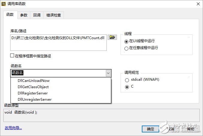 请问Labview调用DLL文件,添加完了路径之后,看不到函数名是怎么回事?