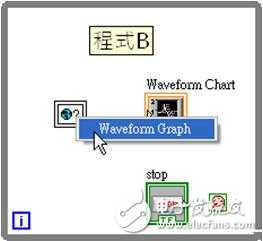 然后再将目前的全域变量视窗储存起来,接着我们再回到刚刚的程序里,现在你再点一下全域变量,你会发现,多了一个Waveform Chart可以选择了。