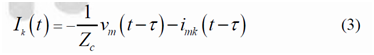 其中k 为k端的注入电流源, I τ 为波传播时间,c Z 为特征阻抗, 为m 端的端口电压、电流。三相分布式参数线路的详细公式(Bergeron)参见文[5]。