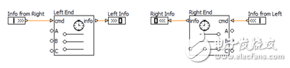 多核并行编程一般都是通过文本的方式利用多线程方式来实现[7-8];因为文本编程本身是用串行的方式来表达的,对于并行和线程间通信的表达,LabVIEW的图形化的编程方式会显的更直观和形象。在 LabVIEW 中,一个定时循环(Timed loop)就代表一个线程,用户可以将一个或者多个定时循环分配到指定的CPU 核上,这样可以方便的实现单核多线程,或者多核多线程并行的编程。定时循环之间可以通过确定性的RT(Real Time) FIFO 来进行通信。RT FIFO 是LabVIEW封装好的一种实时循环间的通信API,它的特点是支持以确定性方式发送和接收数据,数据传输不会引起实时系统的抖动(jitter)。 图 5 中有两个LabVIEW 定时循环,一个分配到了CPU 的0 核,一个分配到了CPU 的1 核,每个循环的周期都是100 微秒(dt 为100)。每个循环中都运行着一个StarSim 的模型程序,这两个子模型是原来一个大系统通过一条分布式参数线路分割得到,线路两端的电压和电流通过RT FIFO 实现核之间的实时确定性通信。