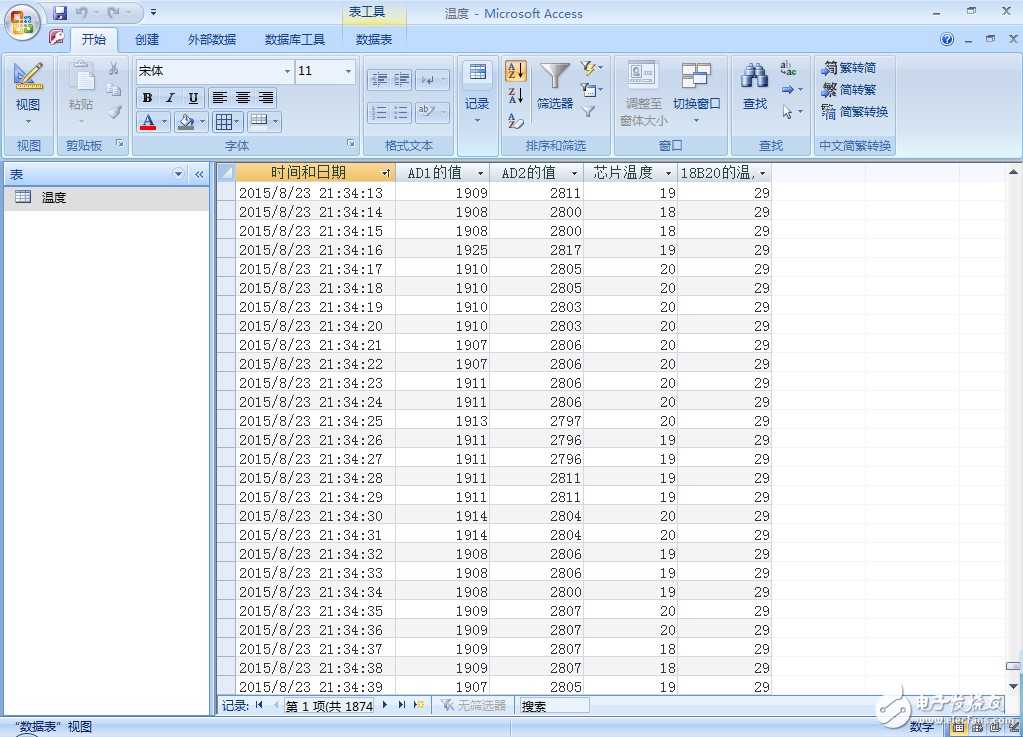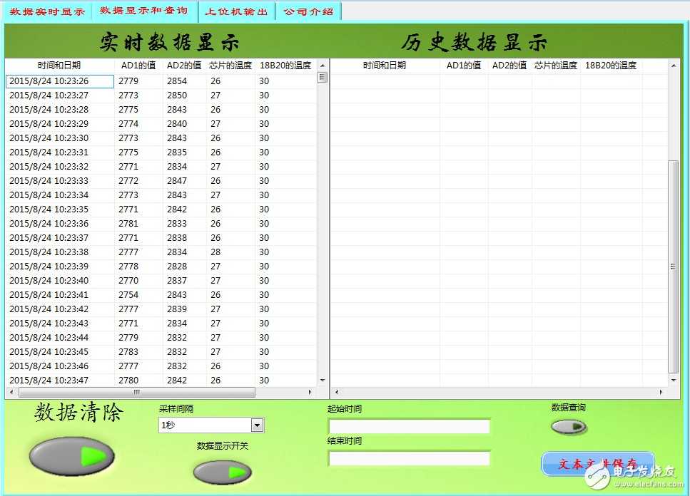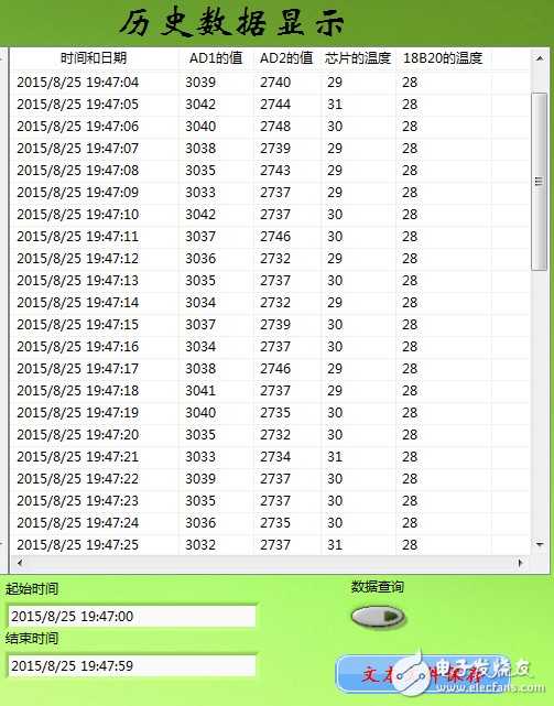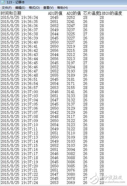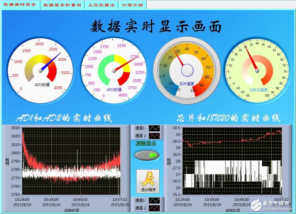 采集单片机上的三端电阻的值(R36,AD1),热敏电阻的值(AD2),主芯片STM32F103VC的温度和18B20的温度以图表和波形图的形式显示: